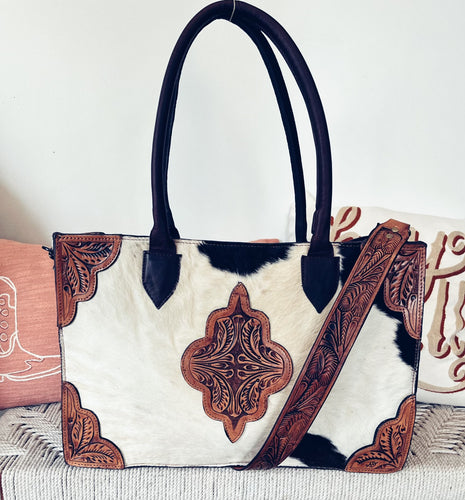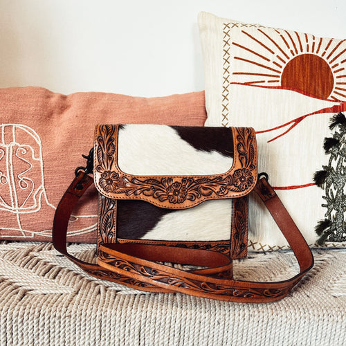 Antique Beauty Hand Tooled Leather Crossbody Purse