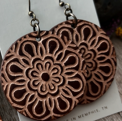 Chocolate Boho Western Hand Tooled Leather Earrings