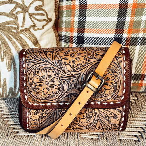 Fallbrook Hand Tooled Leather Crossbody Purse