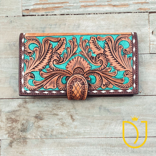 Dive into the details of our Western leather wallets and clutches, where every stitch tells a story of genuine artistry. Dodi Jo's understands that functionality is key, which is why our American Darling collection features thoughtful designs with ample card slots, secure compartments, and convenient sizing. Whether you prefer a compact bifold to slip into your pocket, a spacious trifold to hold all your necessities, or a chic clutch for a night out, you’ll find a design that perfectly suits your needs. The natural variations and rich textures of the genuine leather used in these wallets and clutches only enhance their appeal, developing a unique patina over time that tells of your adventures. These aren't just accessories; they are companions for your daily journey, built to withstand the rigors of an active lifestyle while maintaining their inherent beauty. Discover the perfect companion for your style on our product pages, or browse our entire collection of leather wallets.