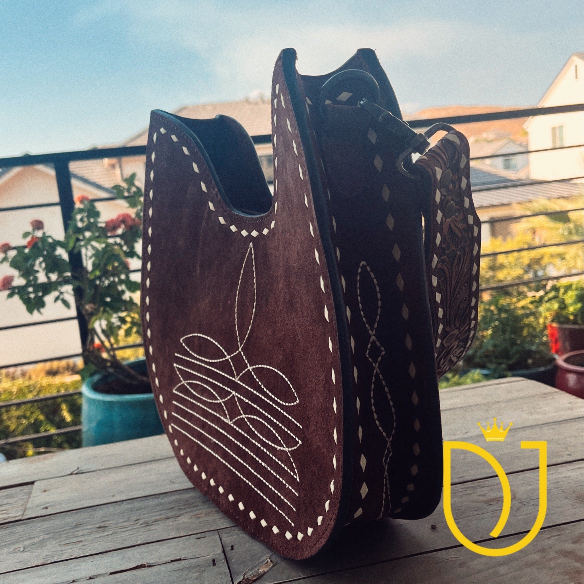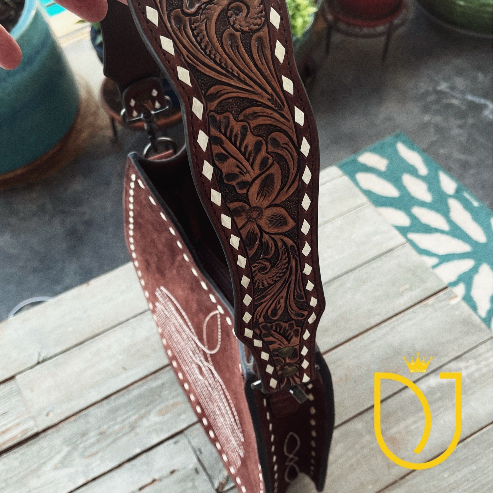 Hobo Style Detachable Hand Tooled Leather Carry Strap