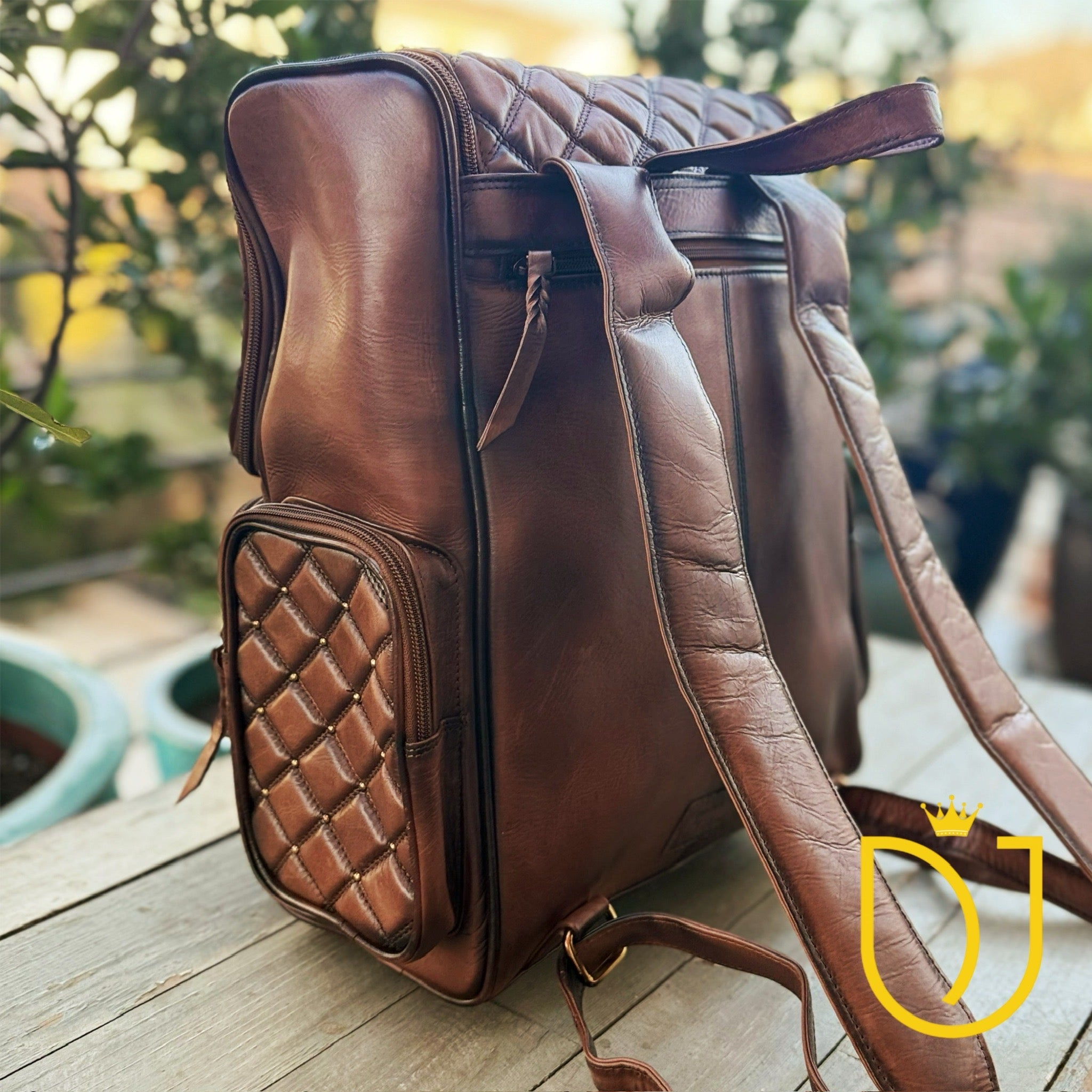 Genuine Full Grain Leather is used for the backpack. It's a Soft and supple leather that ages beautifully as it wears.
