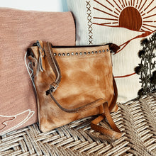 Crossbody with a distressed retro vintage Look and a twist of western fashion in genuine vintage leather