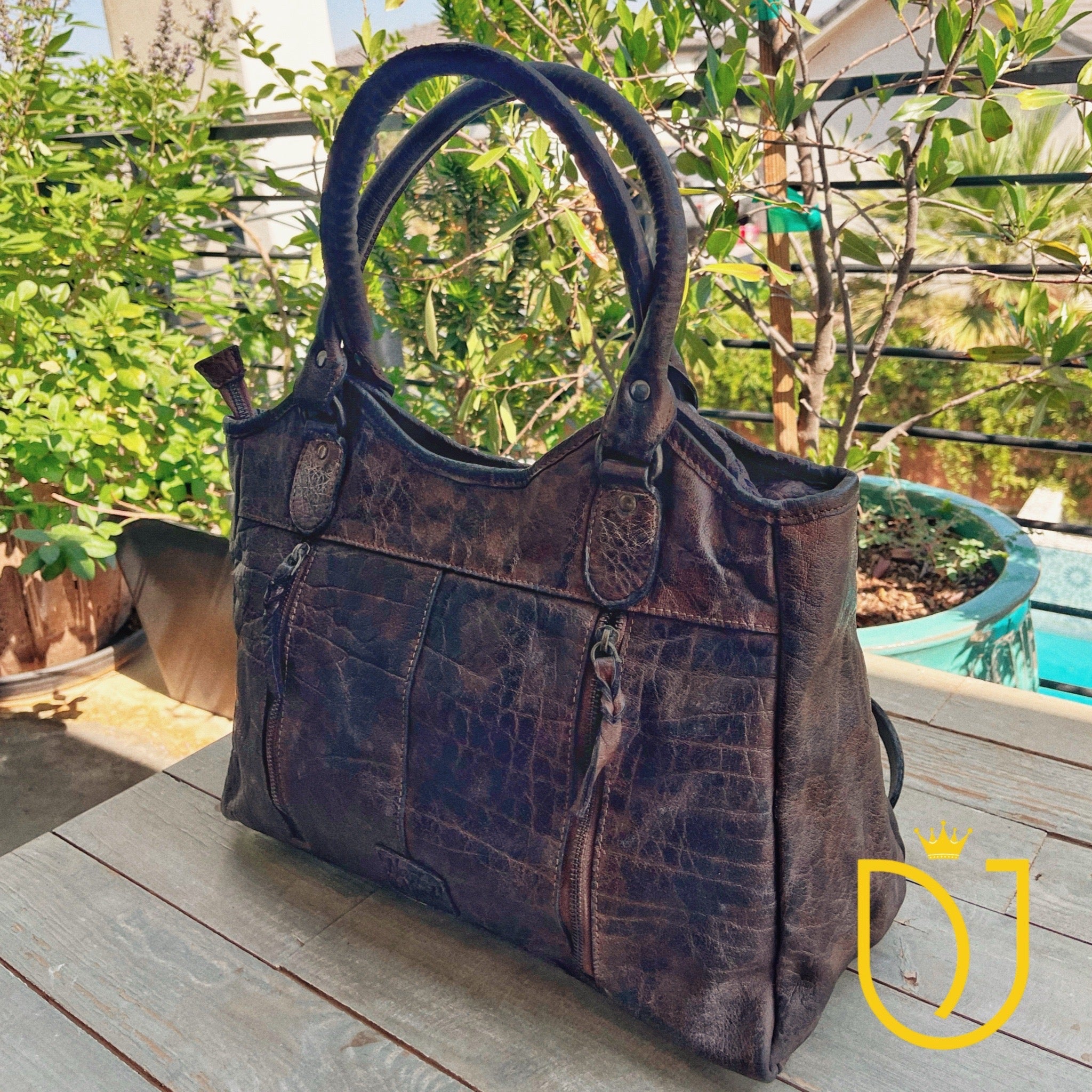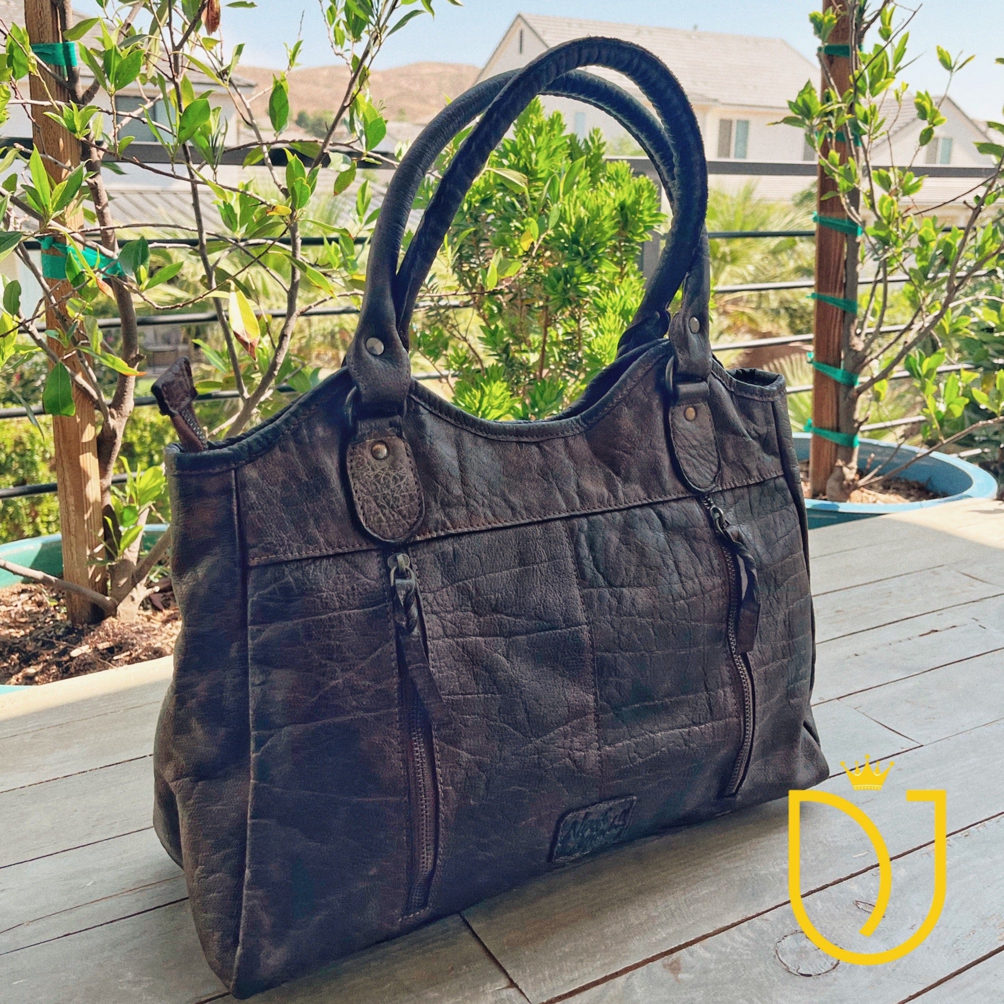 The Never mind creations are hand dyed and finished using individual dyeing method (every creation is individually passed through numerous stages of proprietary method of hand dyeing, brushing, and finishing). It is high time consuming and a detail demanding process. However, the result is a beautiful vintage look with every creation having its own unique and exclusive look.