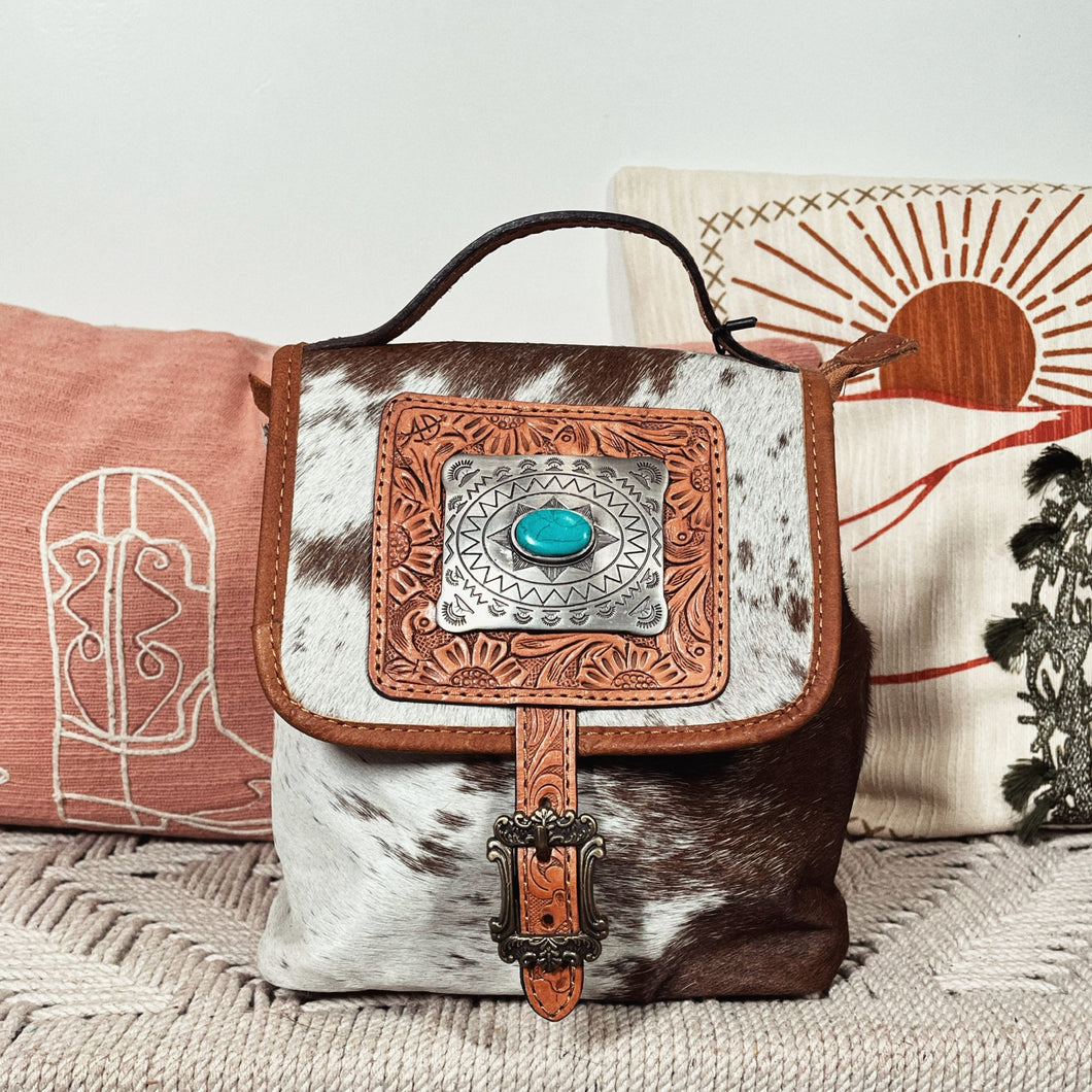 American Darling Western Genuine Full Grain Leather Hair on Cowhide Backpack Purse