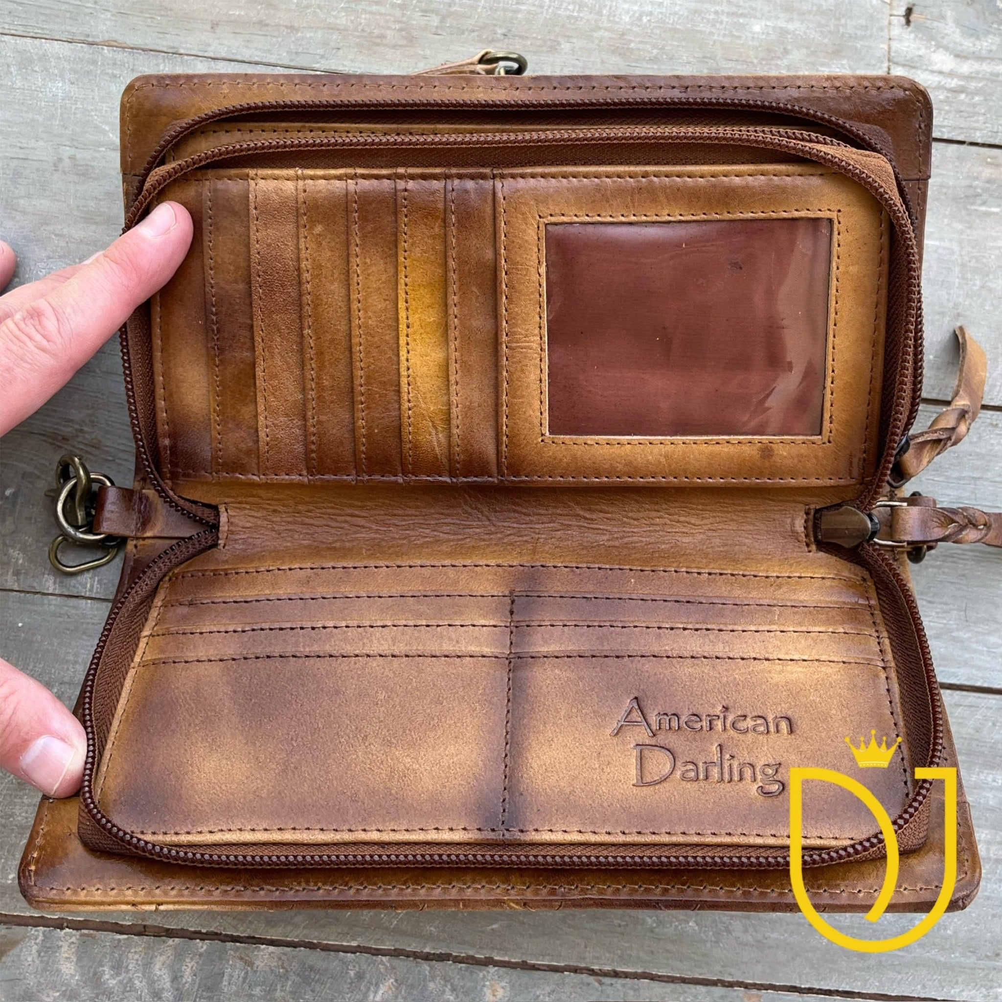 American Darling Genuine Leather Crossbody Wallet Organizer