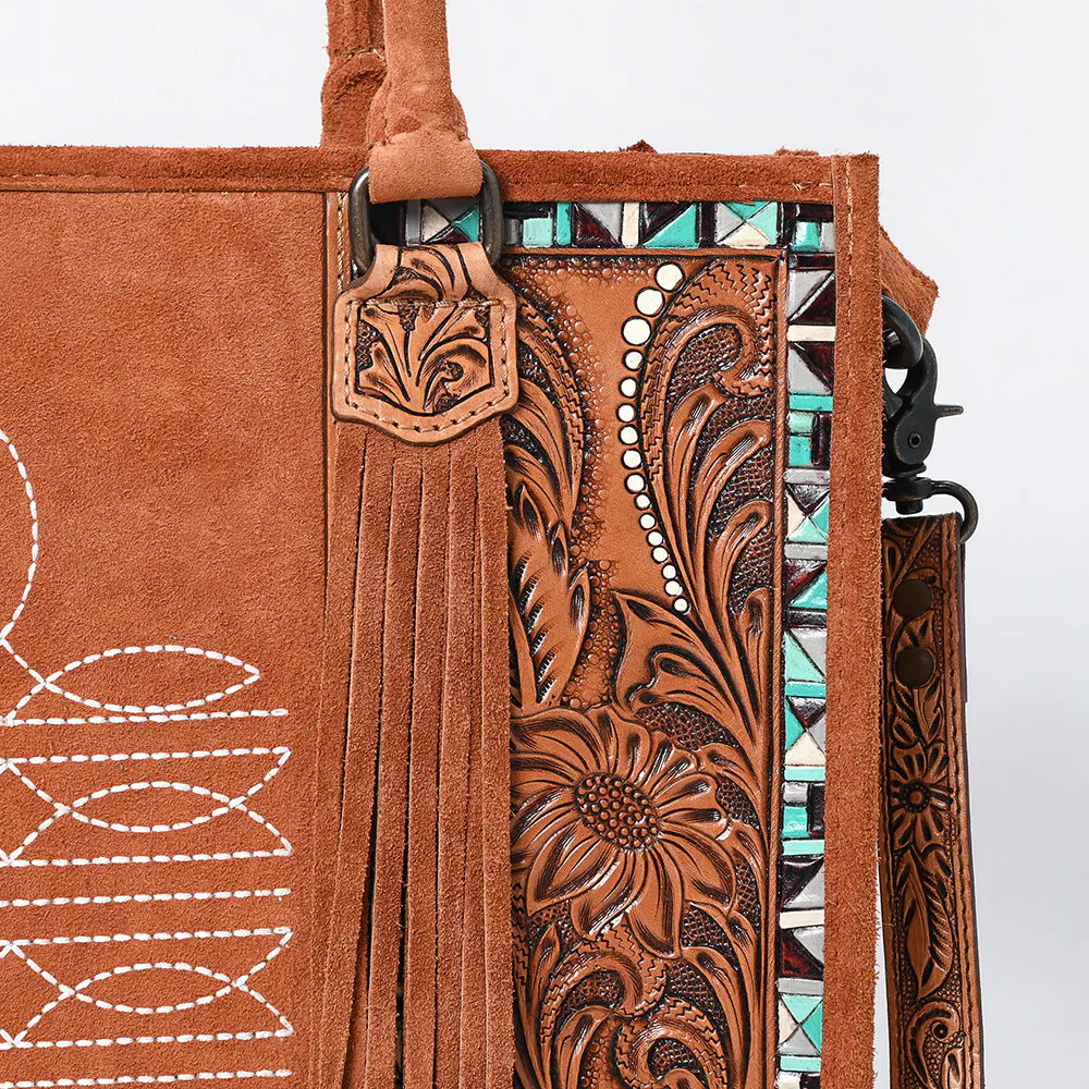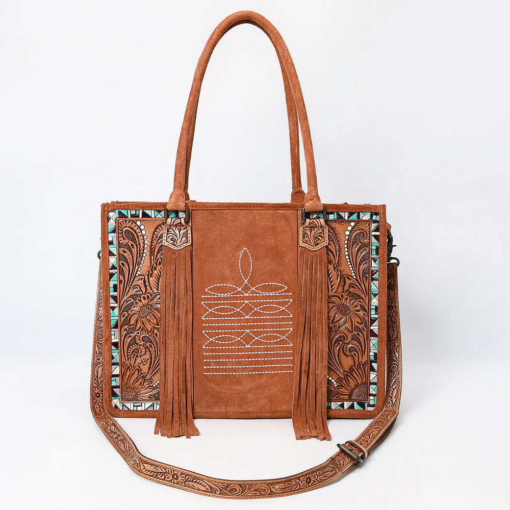 American Darling Hand Tooled Leather and Suede Leather Shoulder Bag