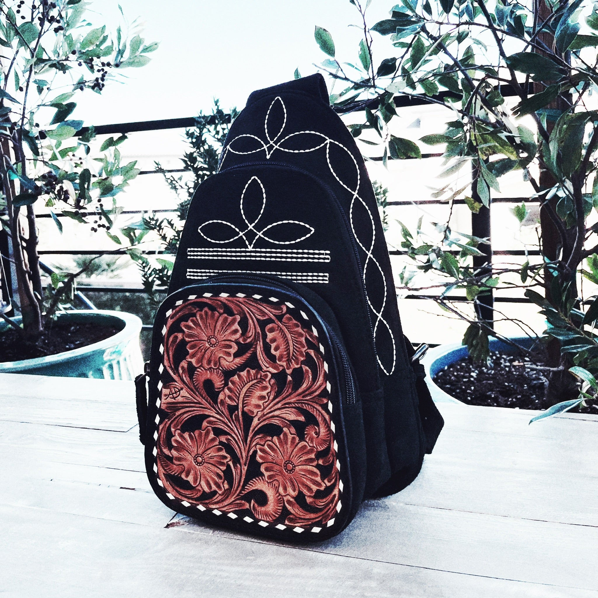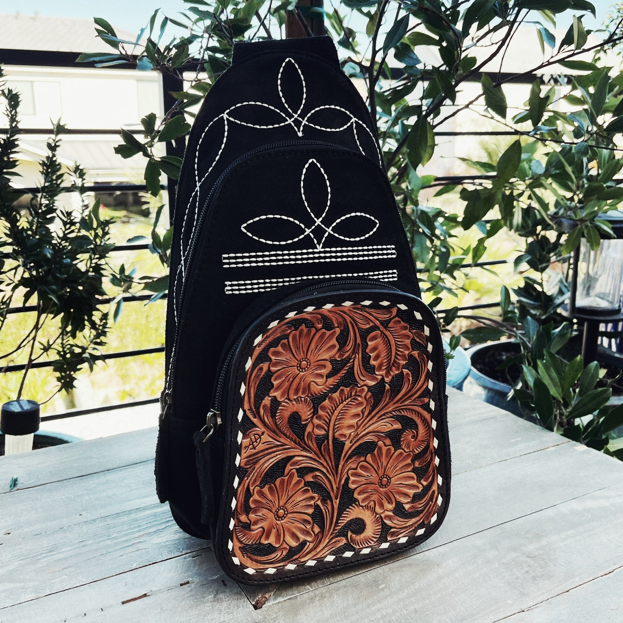 American Darling Genuine Hand Tooled Leather and Suede Backpack Bag