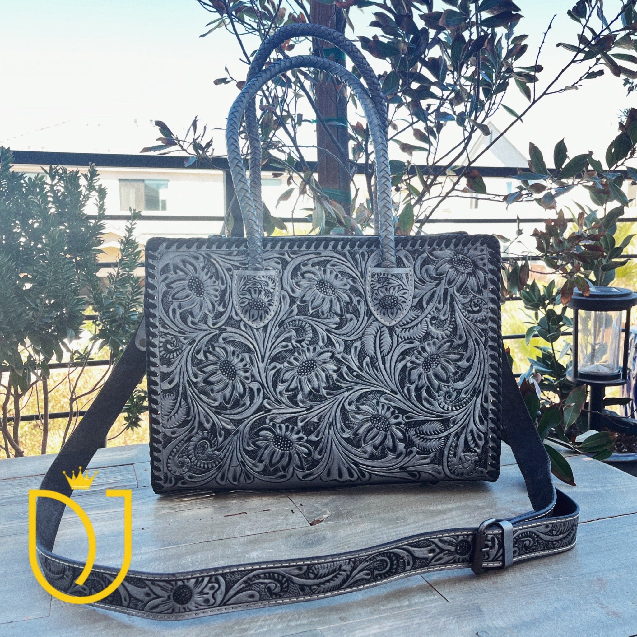 This stunning hand tooled leather bag is sure to complete any look and turn all the heads!