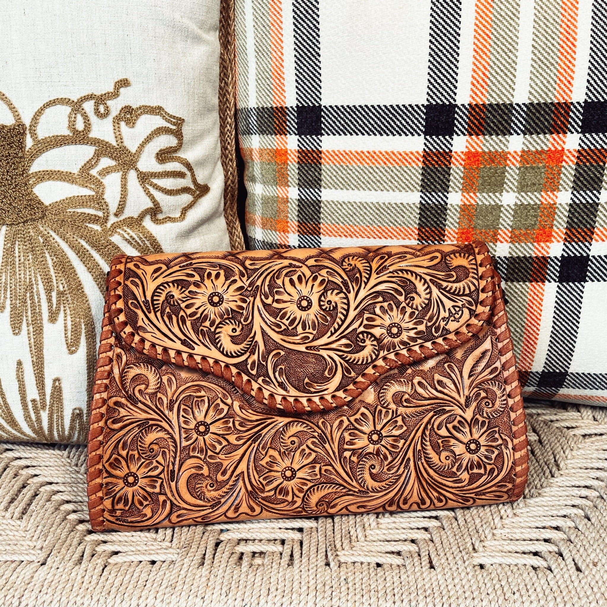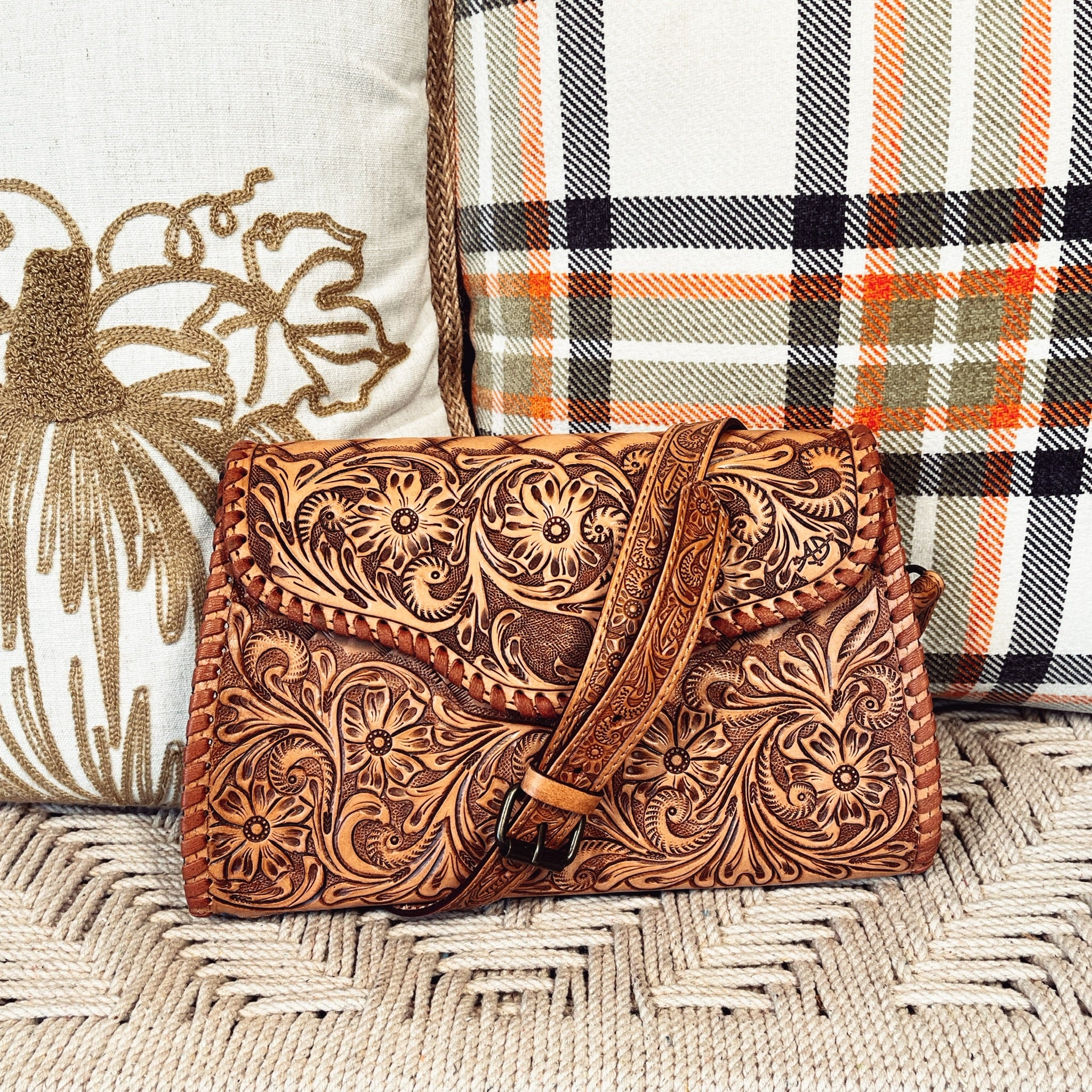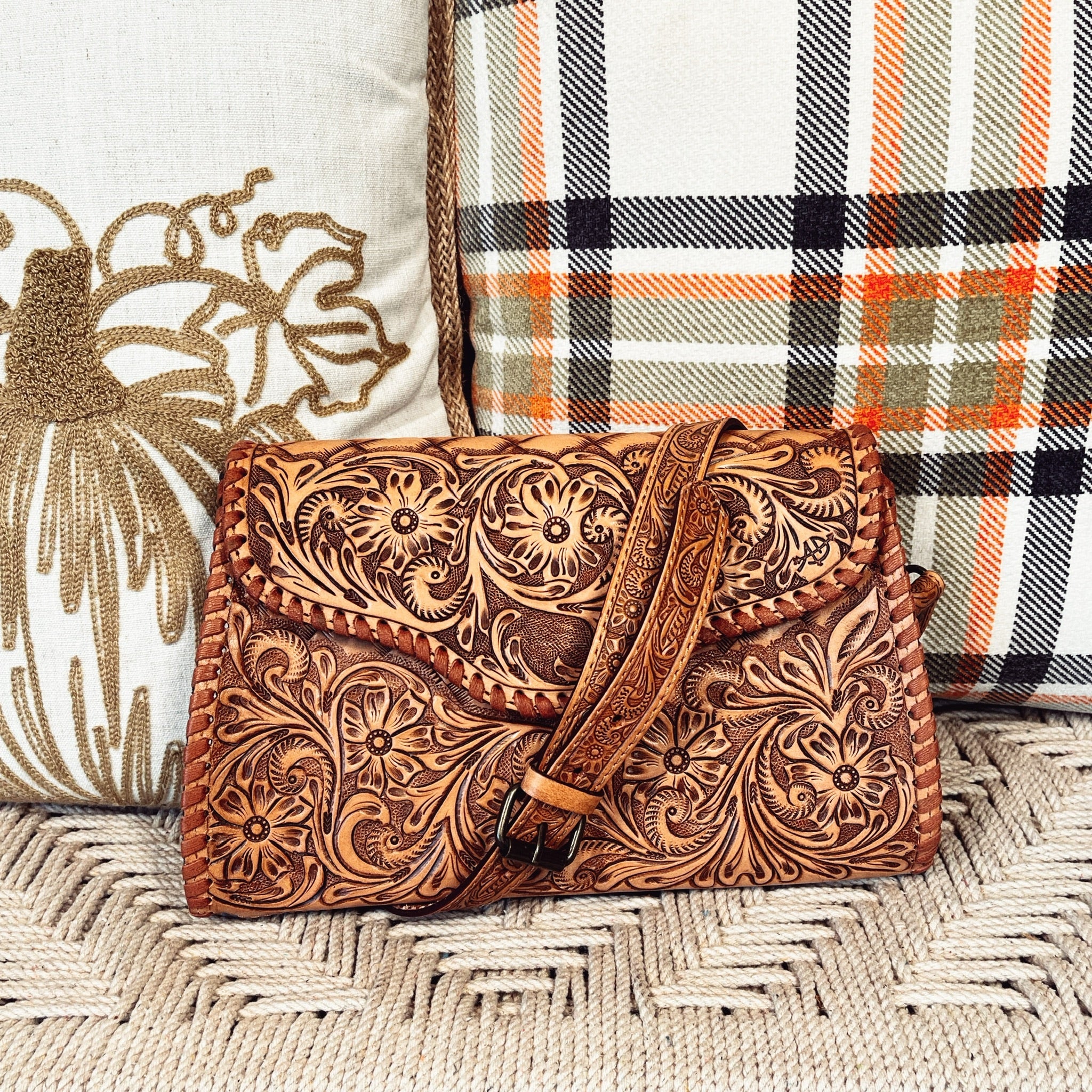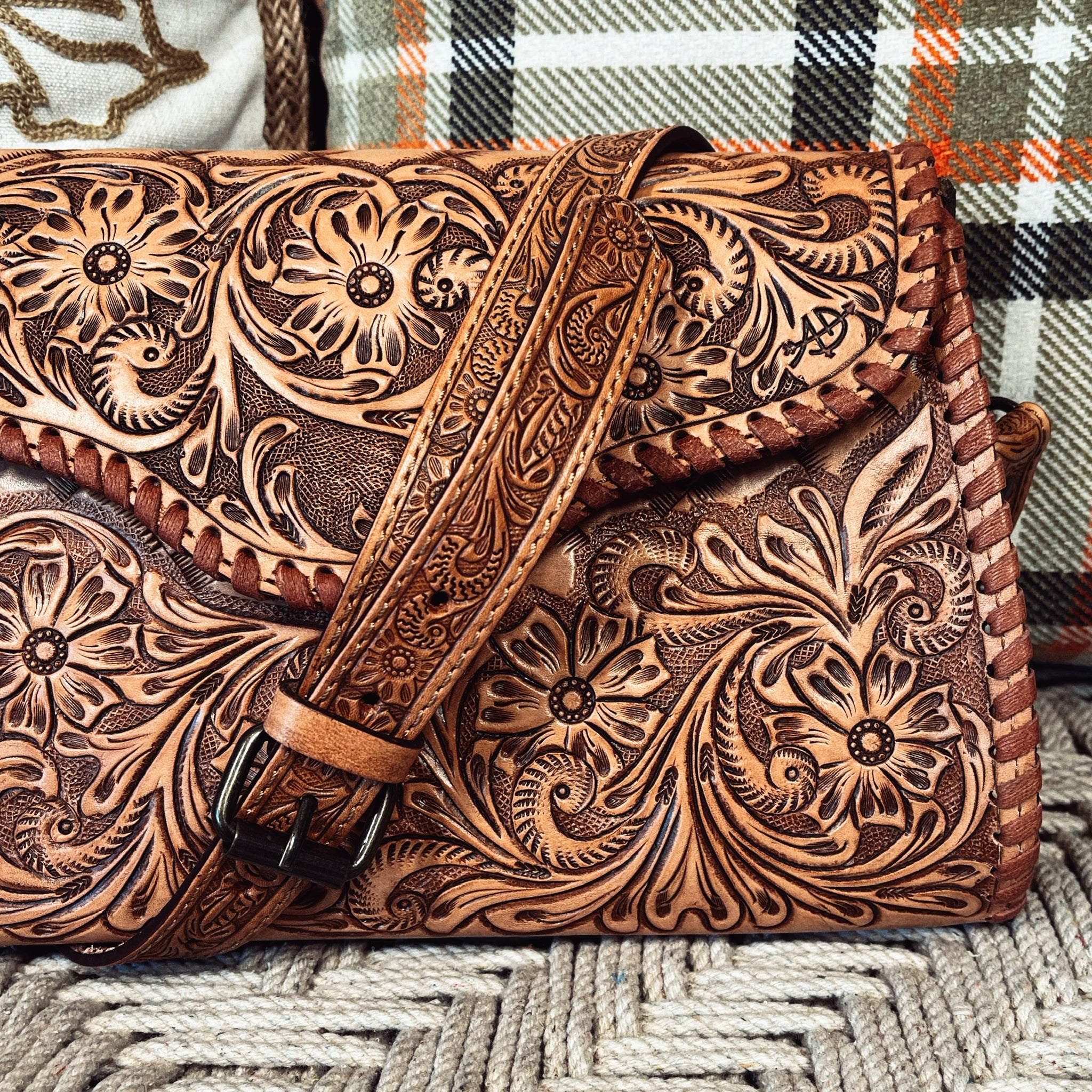 This stunning hand tooled leather bag is sure to complete any look and turn all the heads!