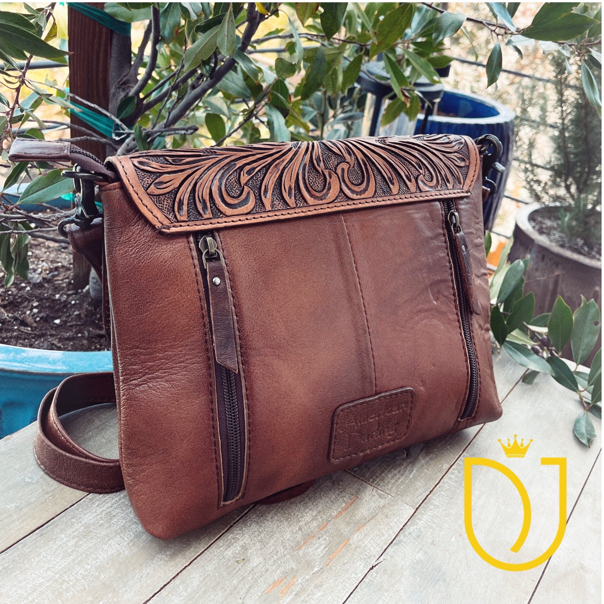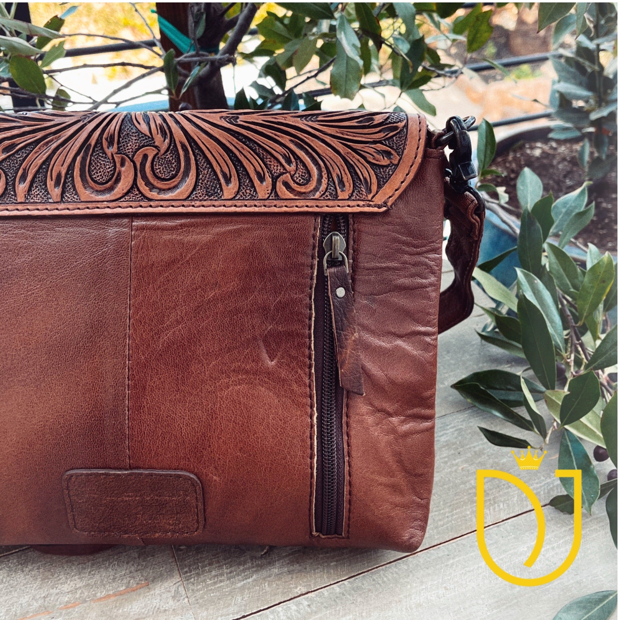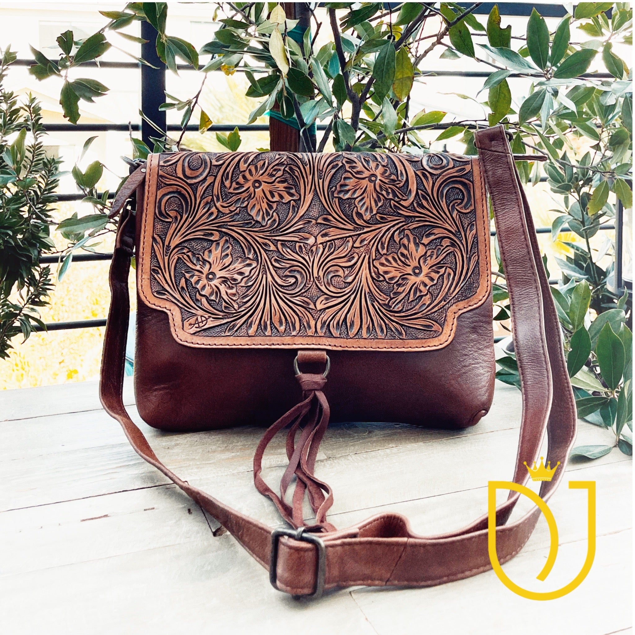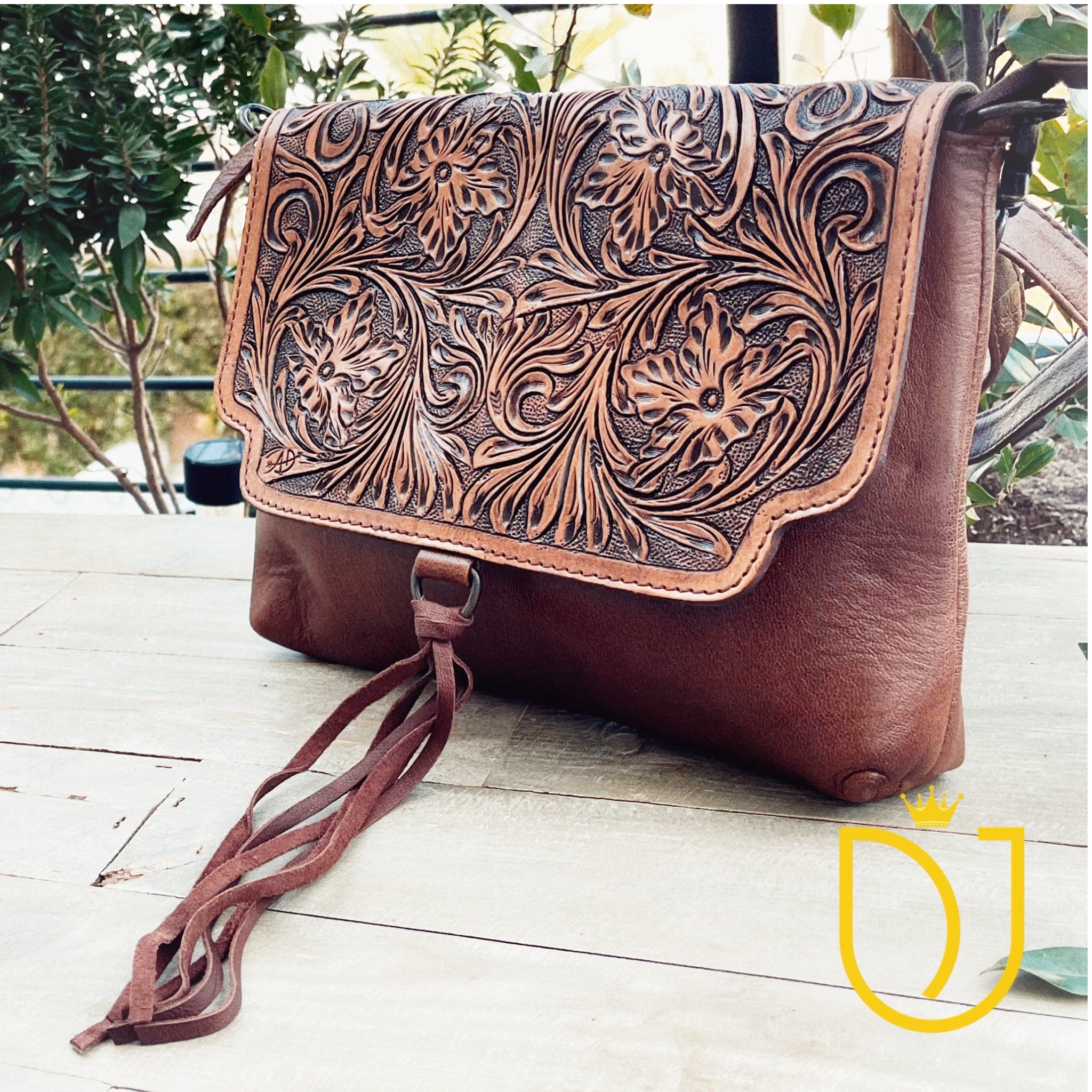 This stunning hand tooled leather bag is sure to complete any look and turn all the heads!