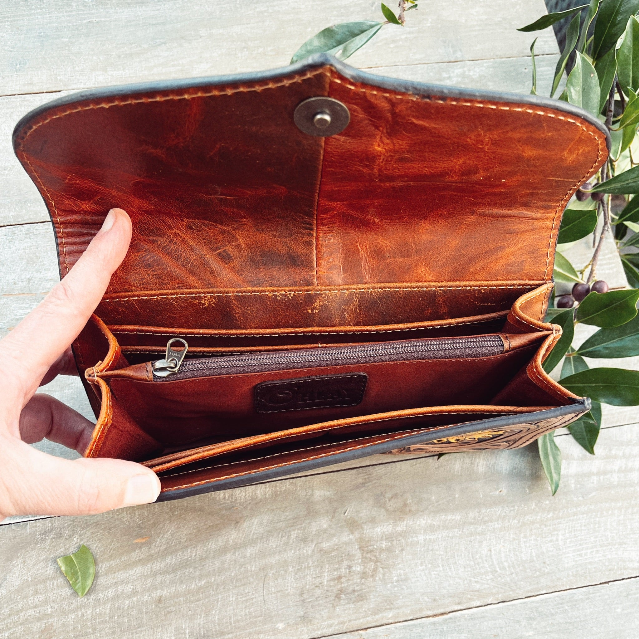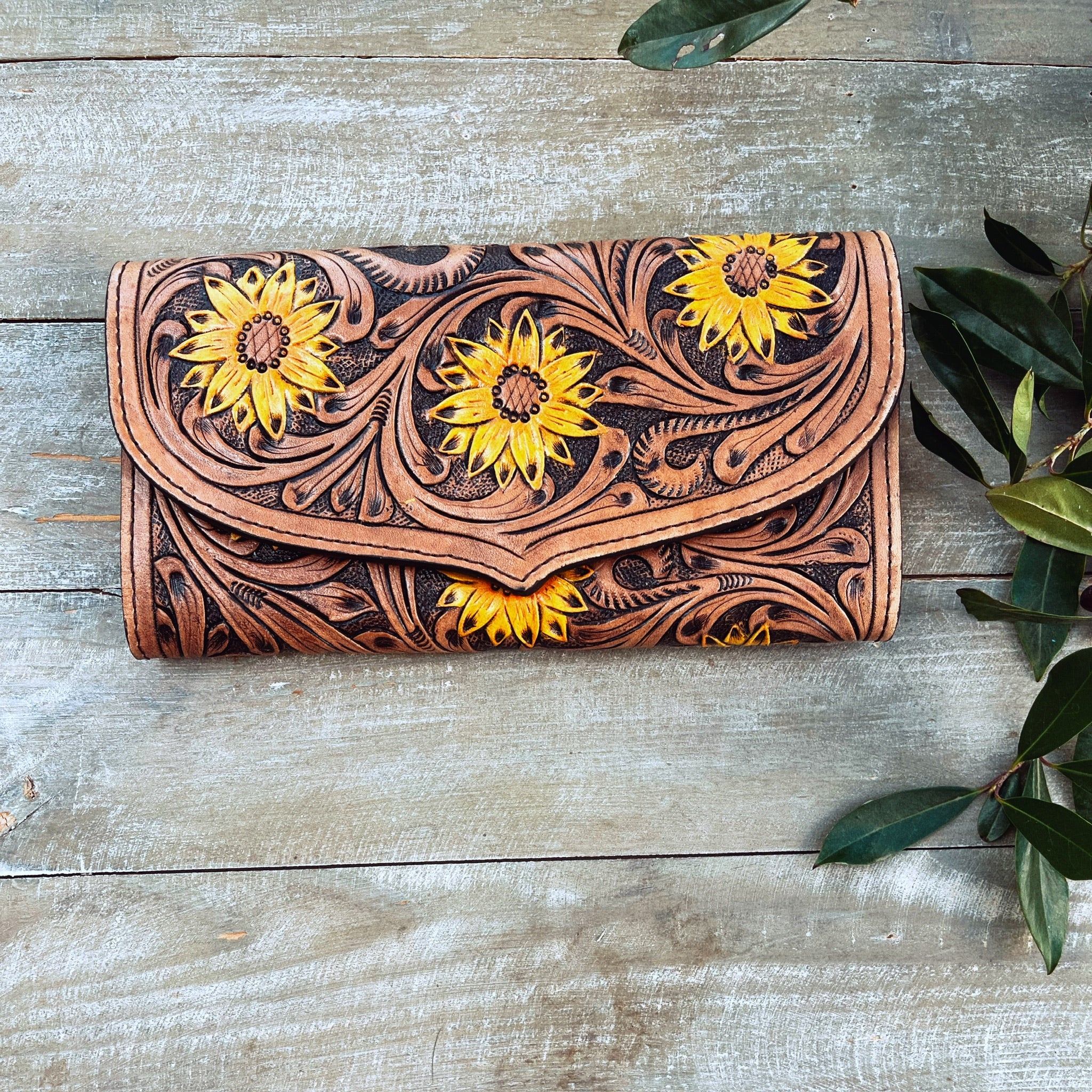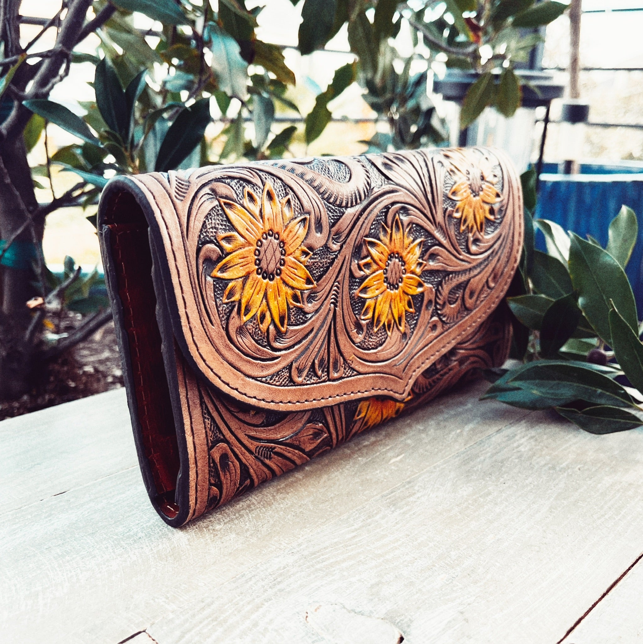 Ohlay by American Darling Hand Tooled Leather Sunflower Wallet