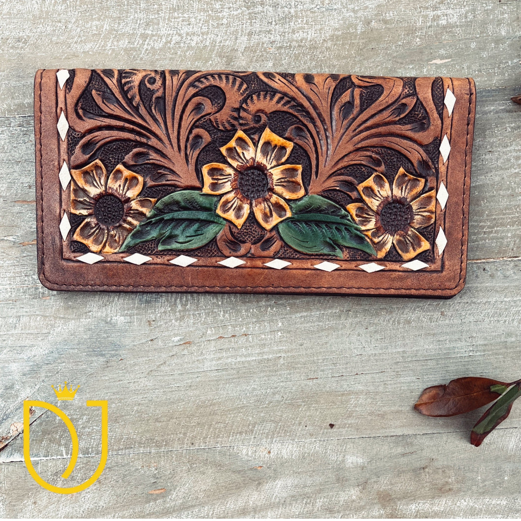 Ohlay by American Darling Sunflower Hand Tooled Leather Wallet