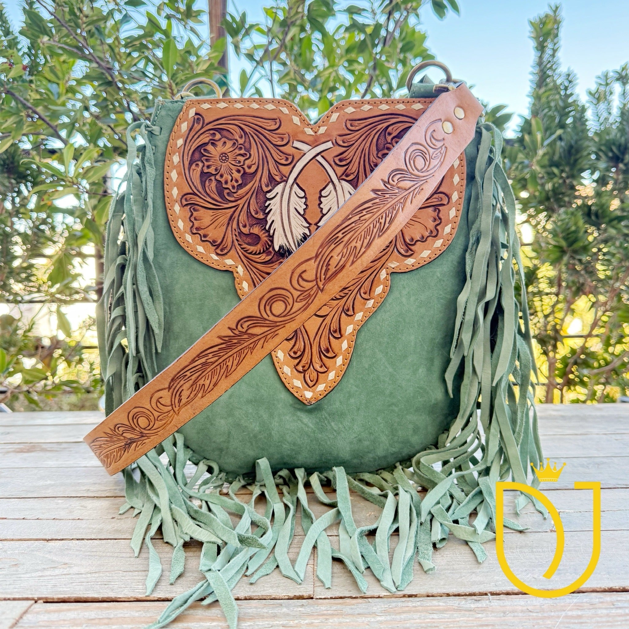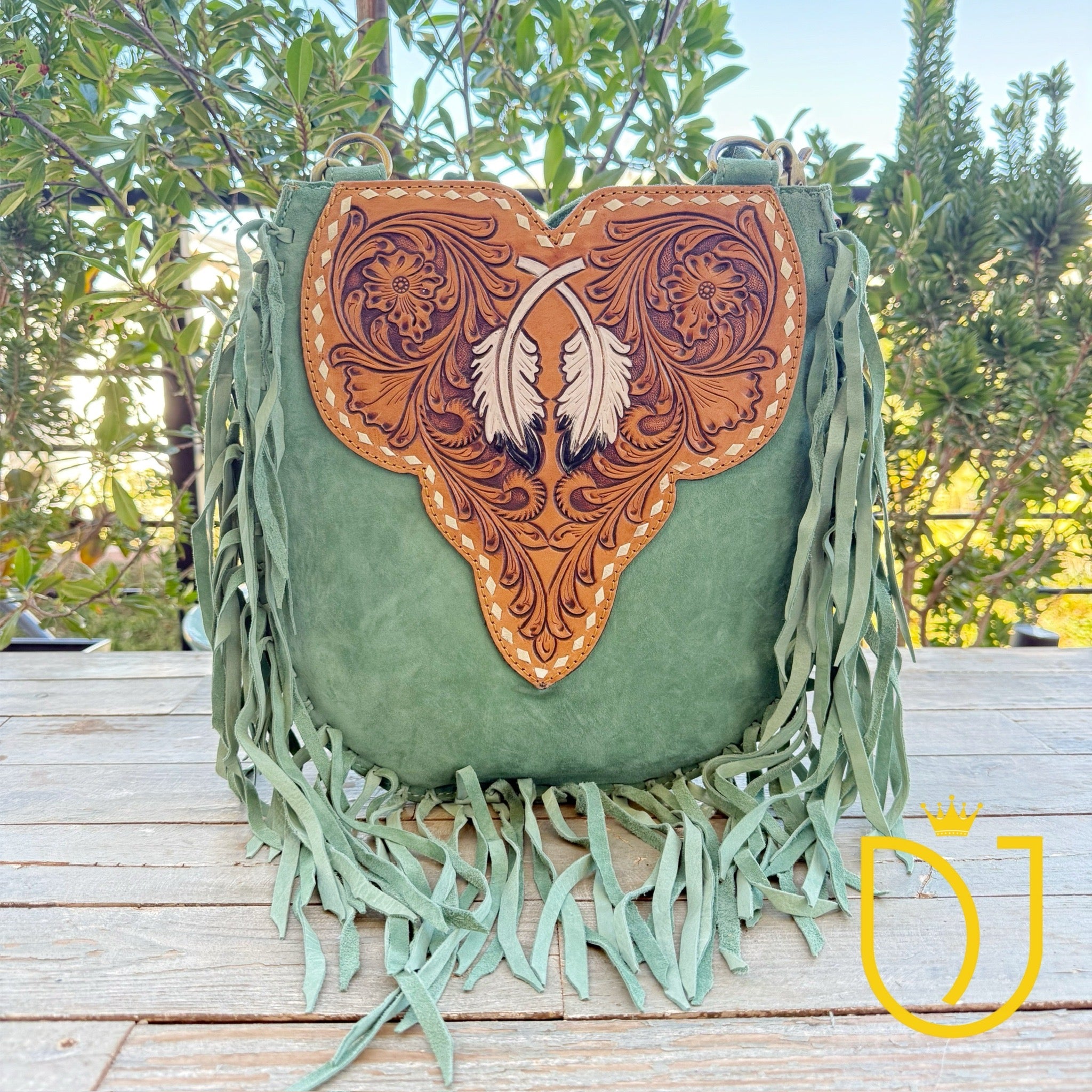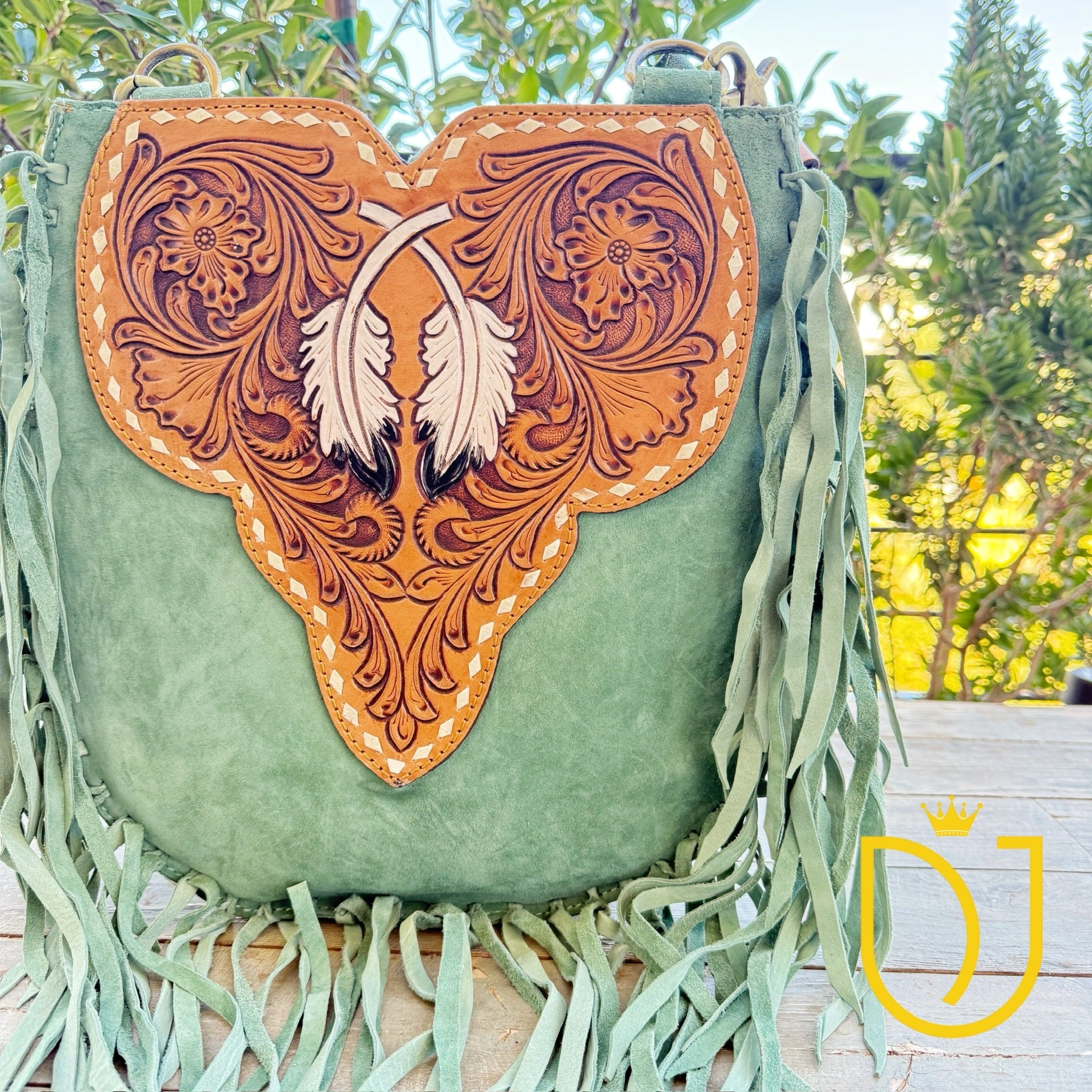 American Darling Hand Tooled and Suede Leather Crossbody Purse