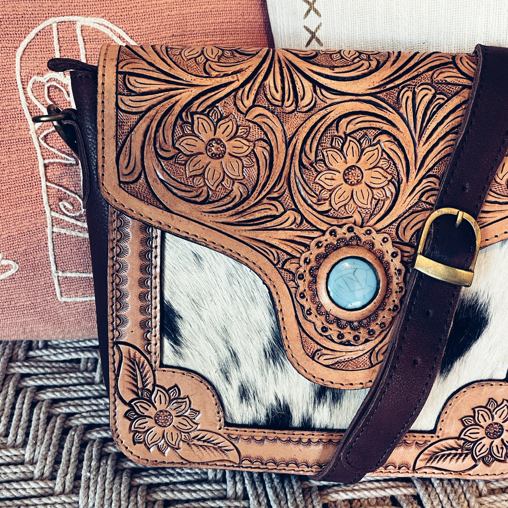 American Darling Hair On Cowhide and Hand Tooled Leather Crossbody Purse