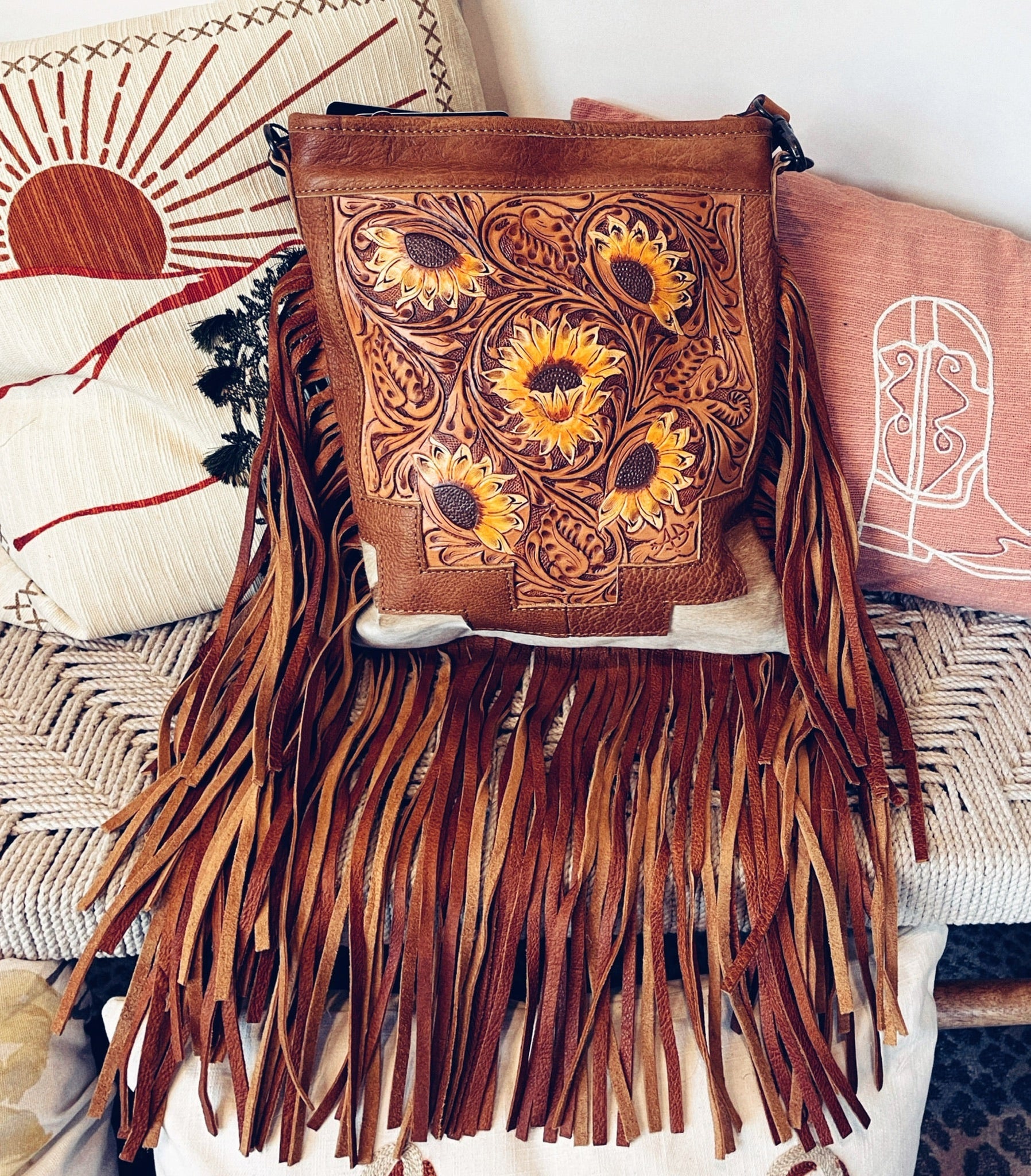 American Darling Hair On Cowhide and Genuine Leather Sunflower Crossbody Purse