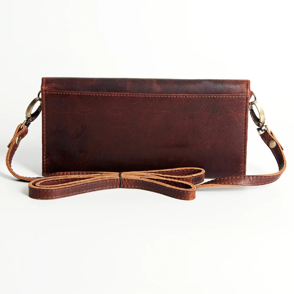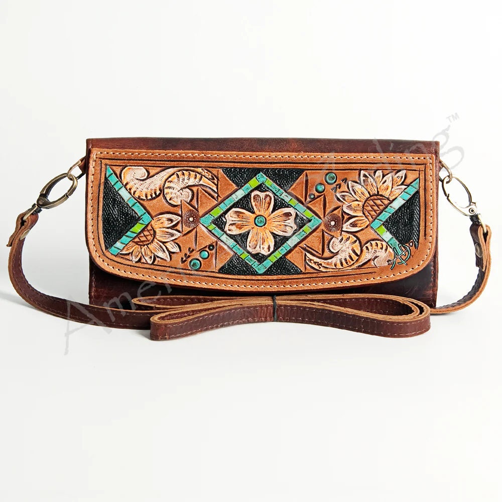 American Darling Western Hand Tooled Leather Crossbody Wallet