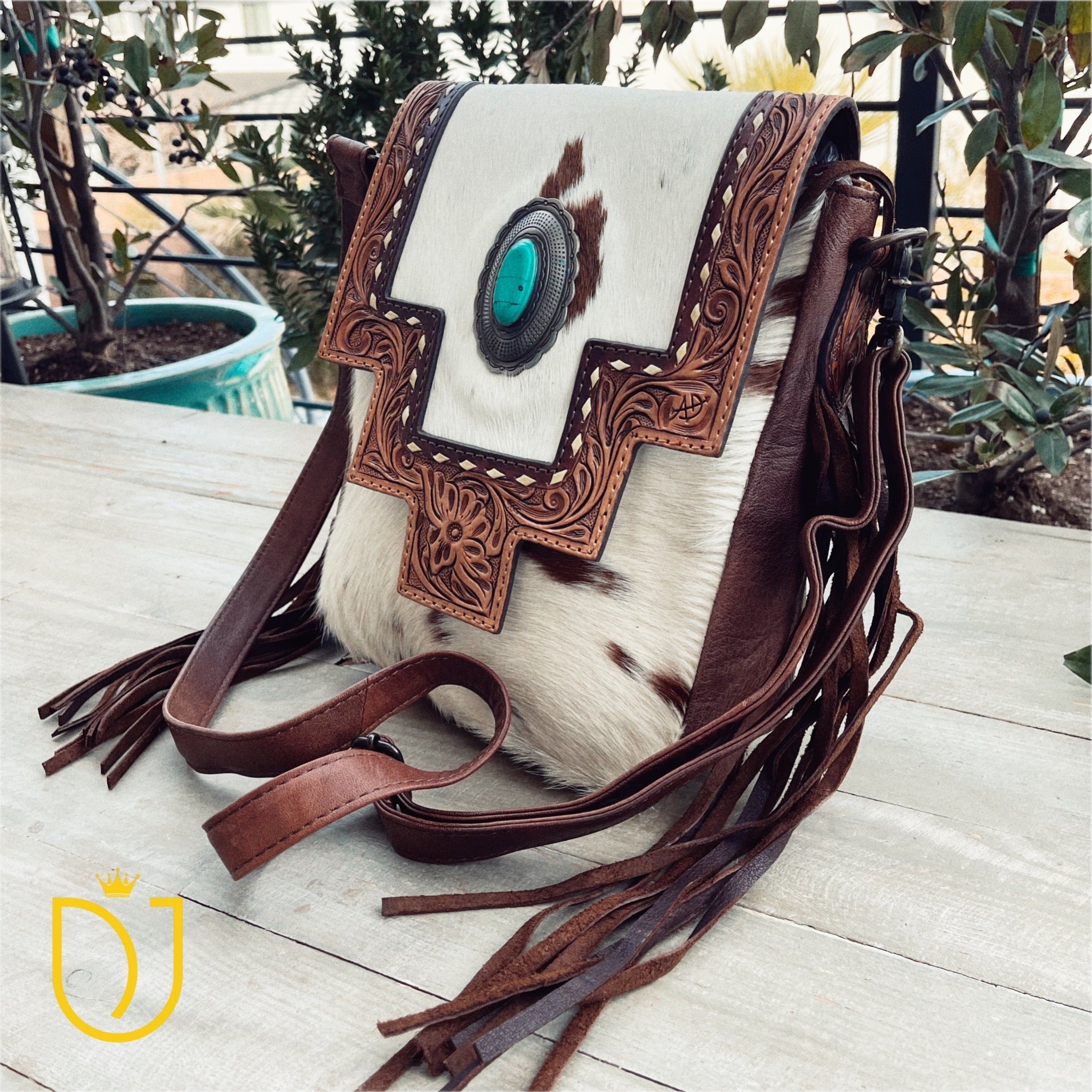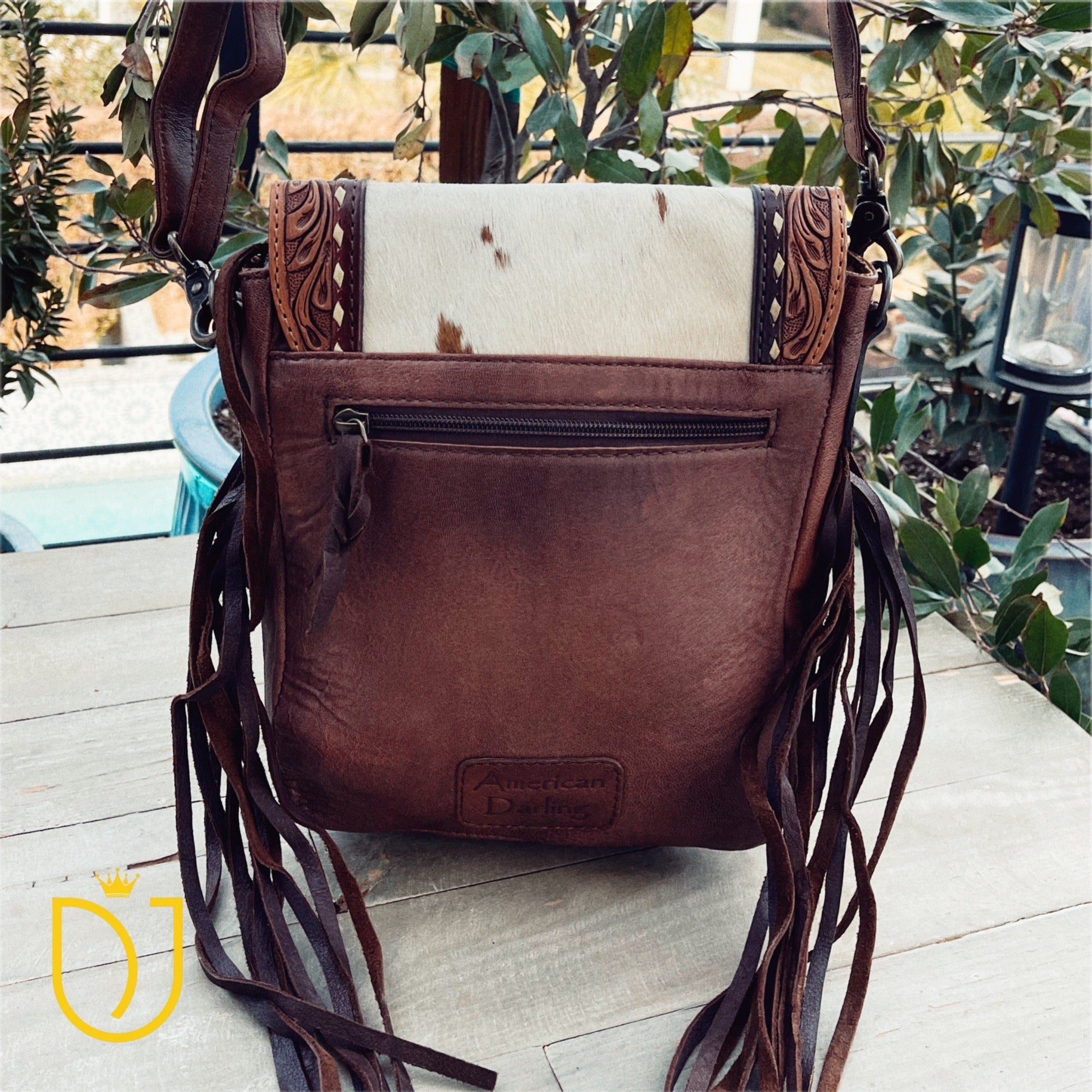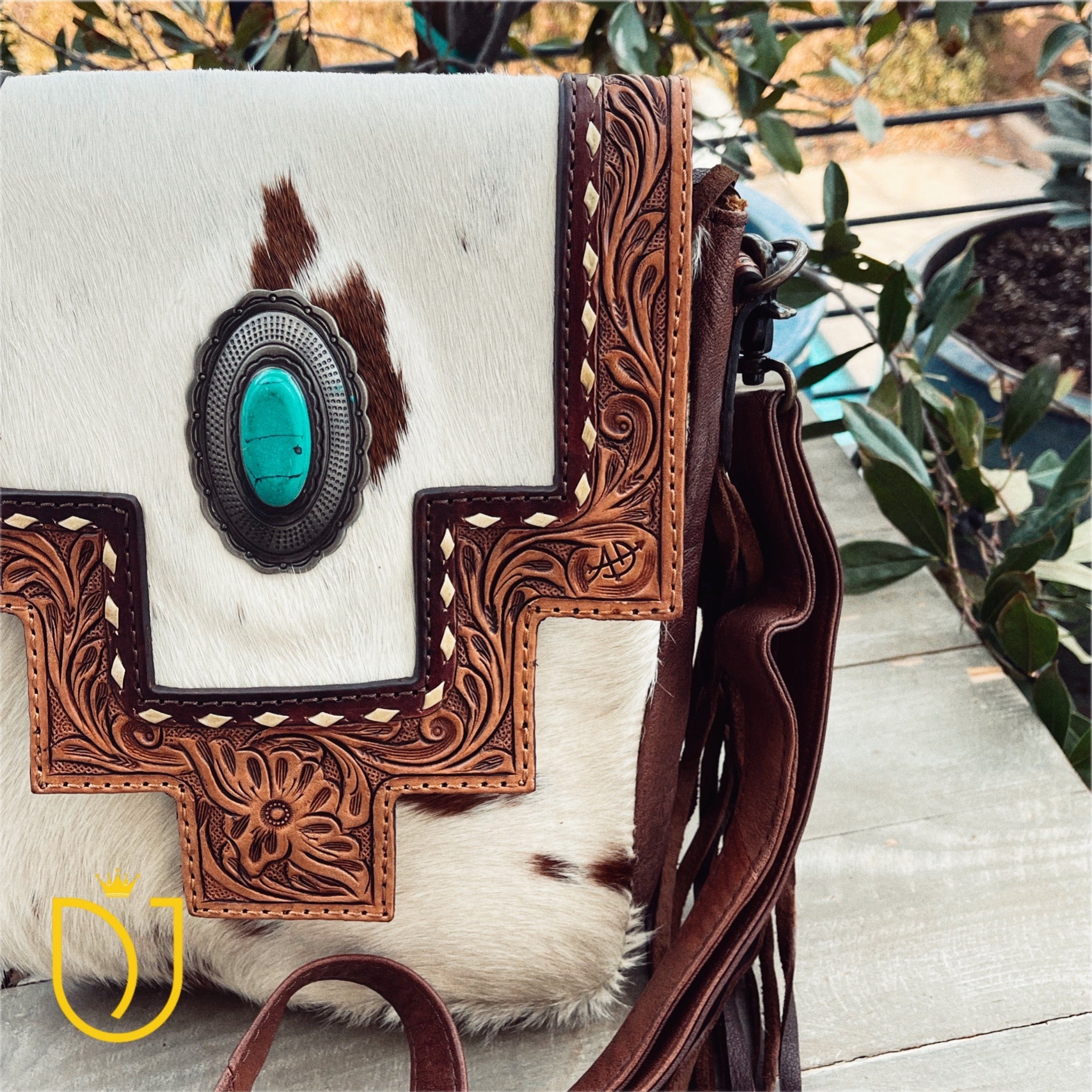 American Darling Hand Tooled Leather and Hair On Cowhide Crossbody Purse
