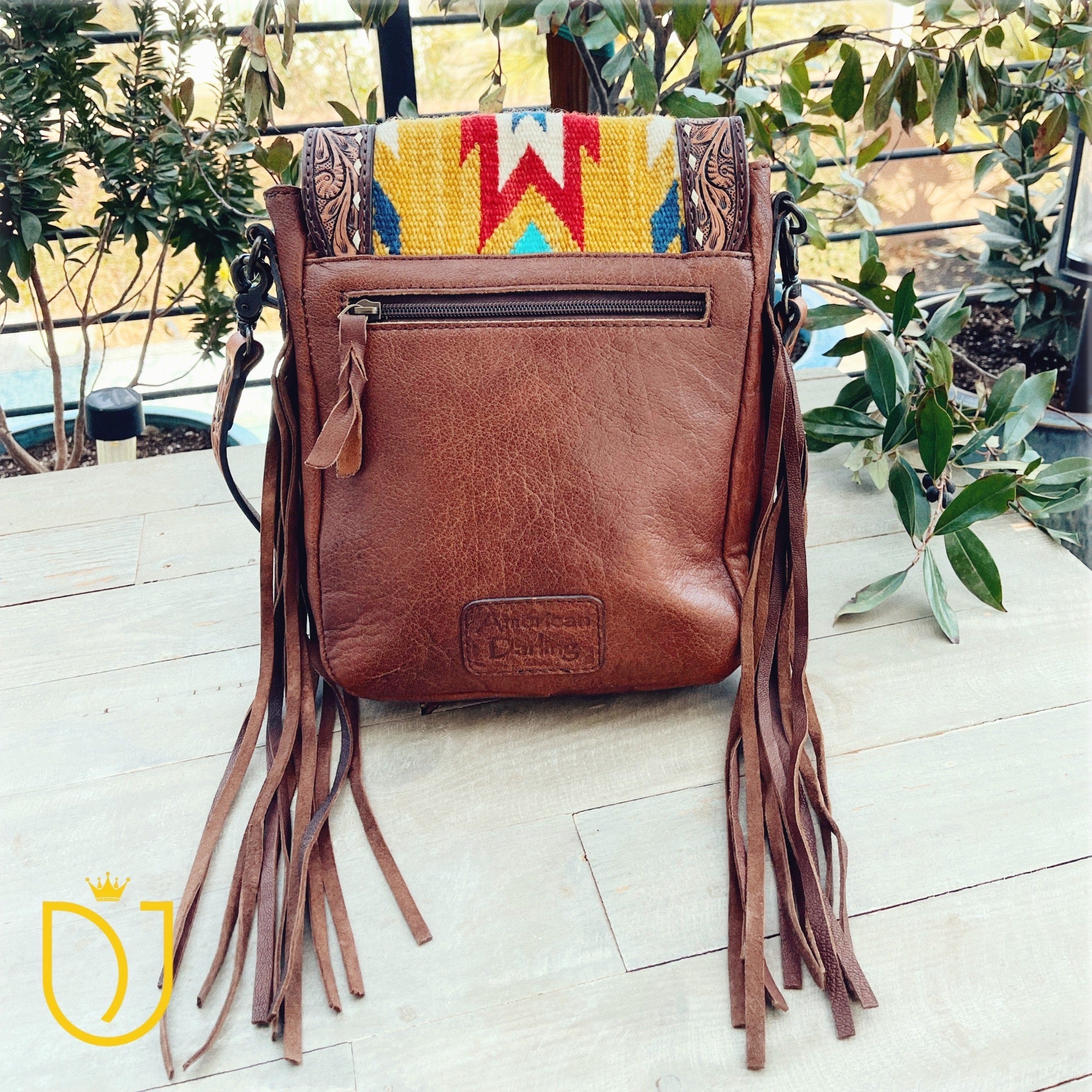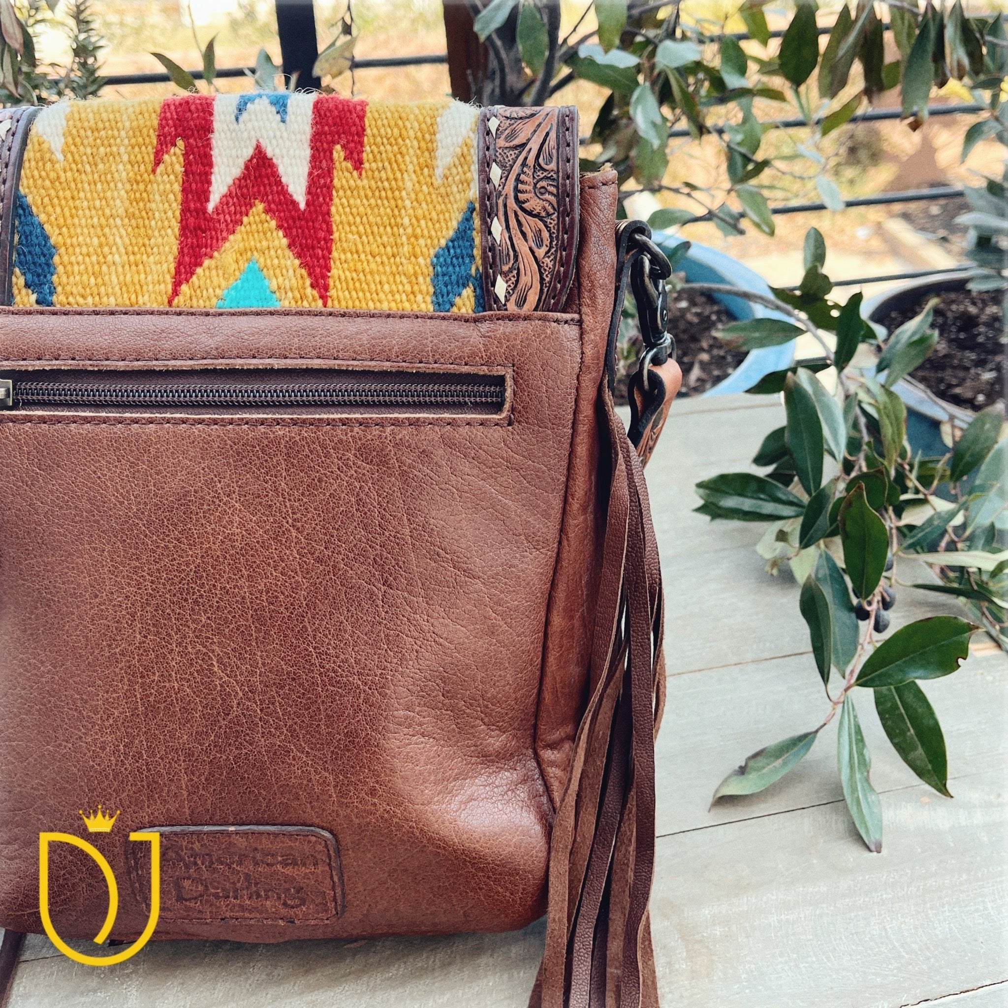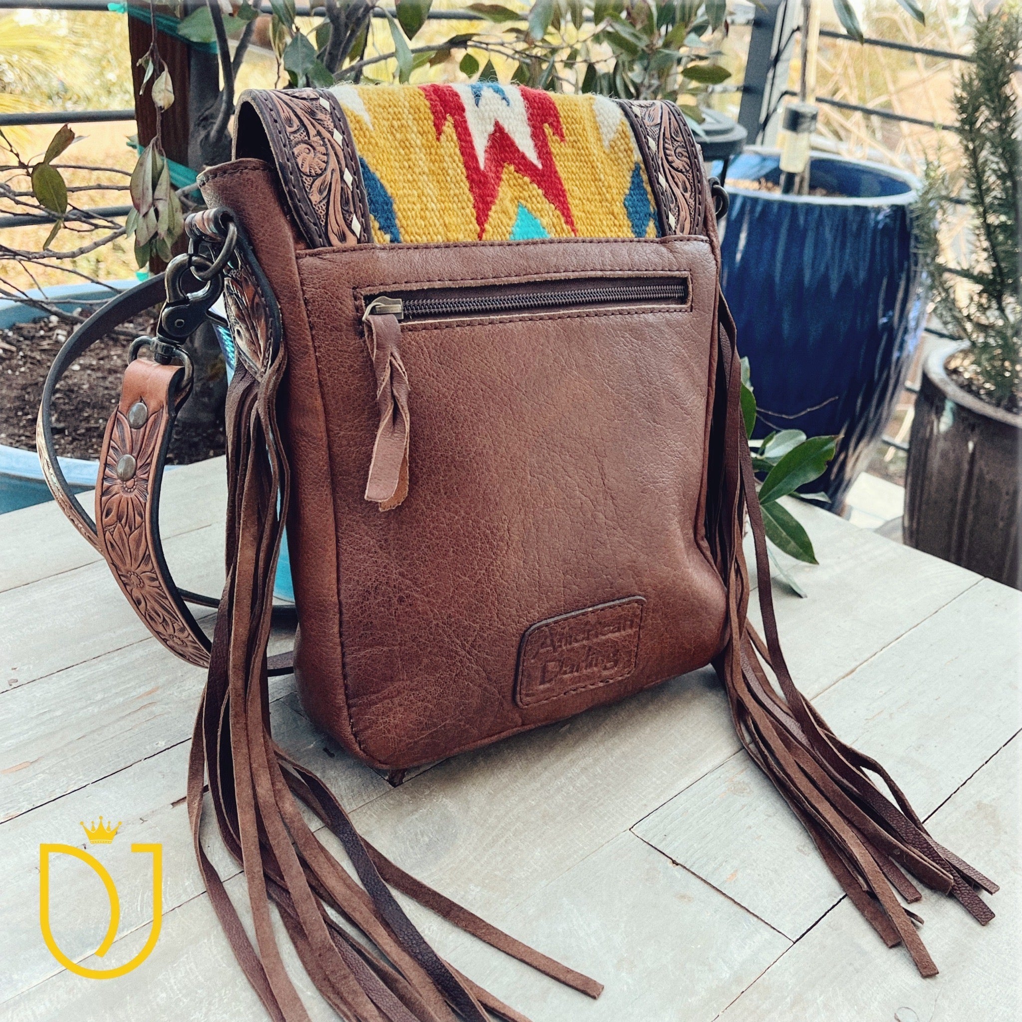 American Darling Saddle Blanket and Hand Tooled Leather Crossbody Purse