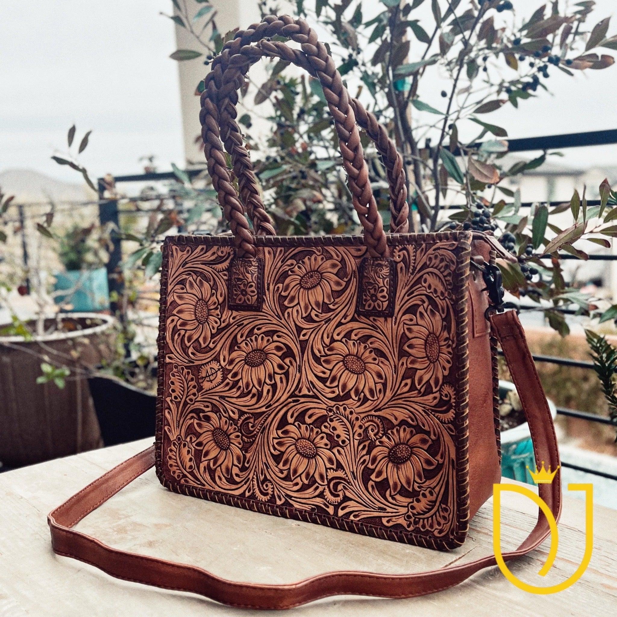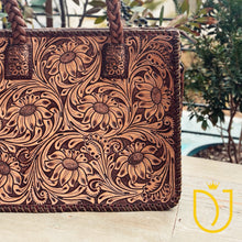 This stunning woven and hand tooled leather bag is sure to complete any look and turn all the heads!